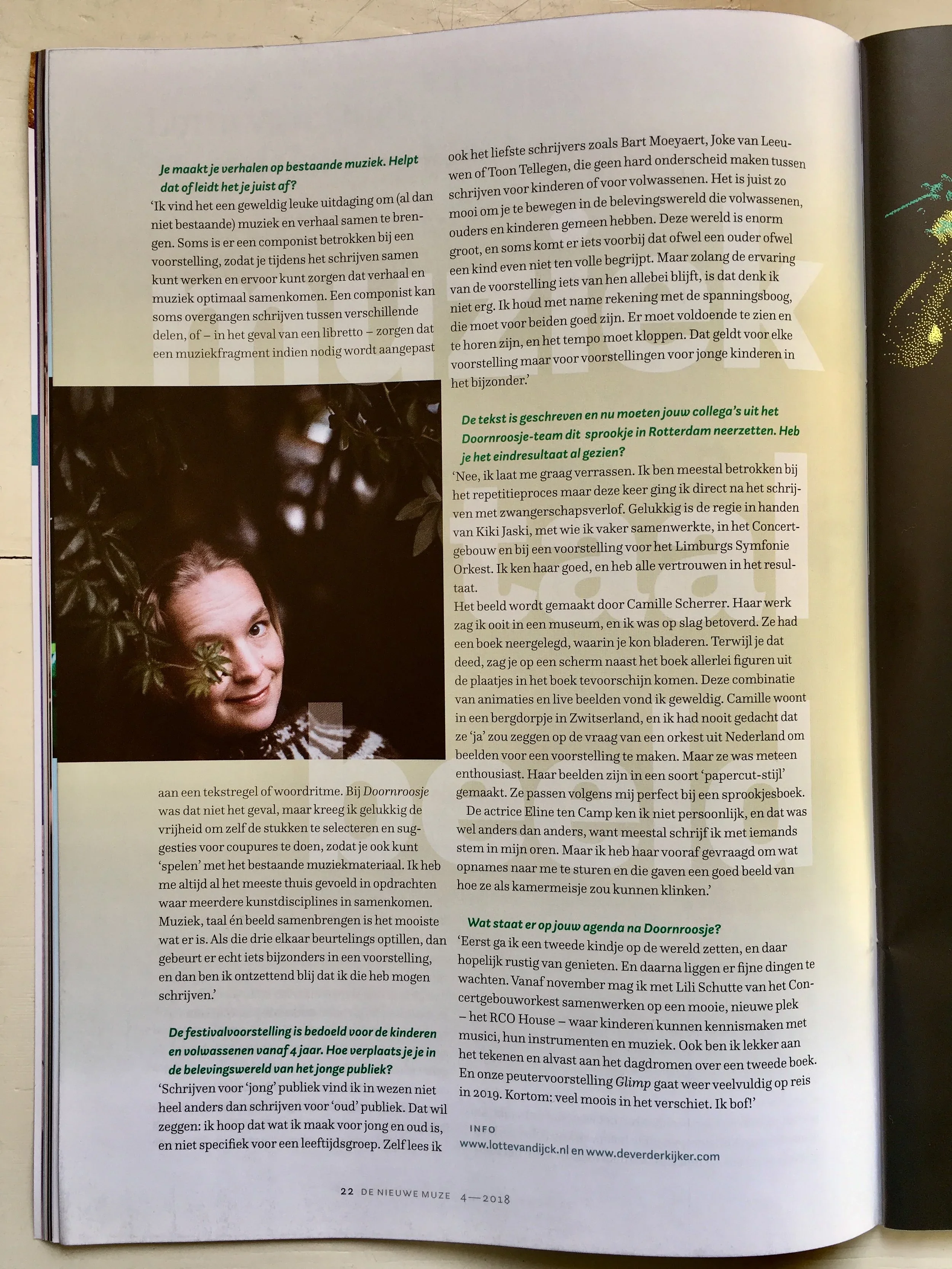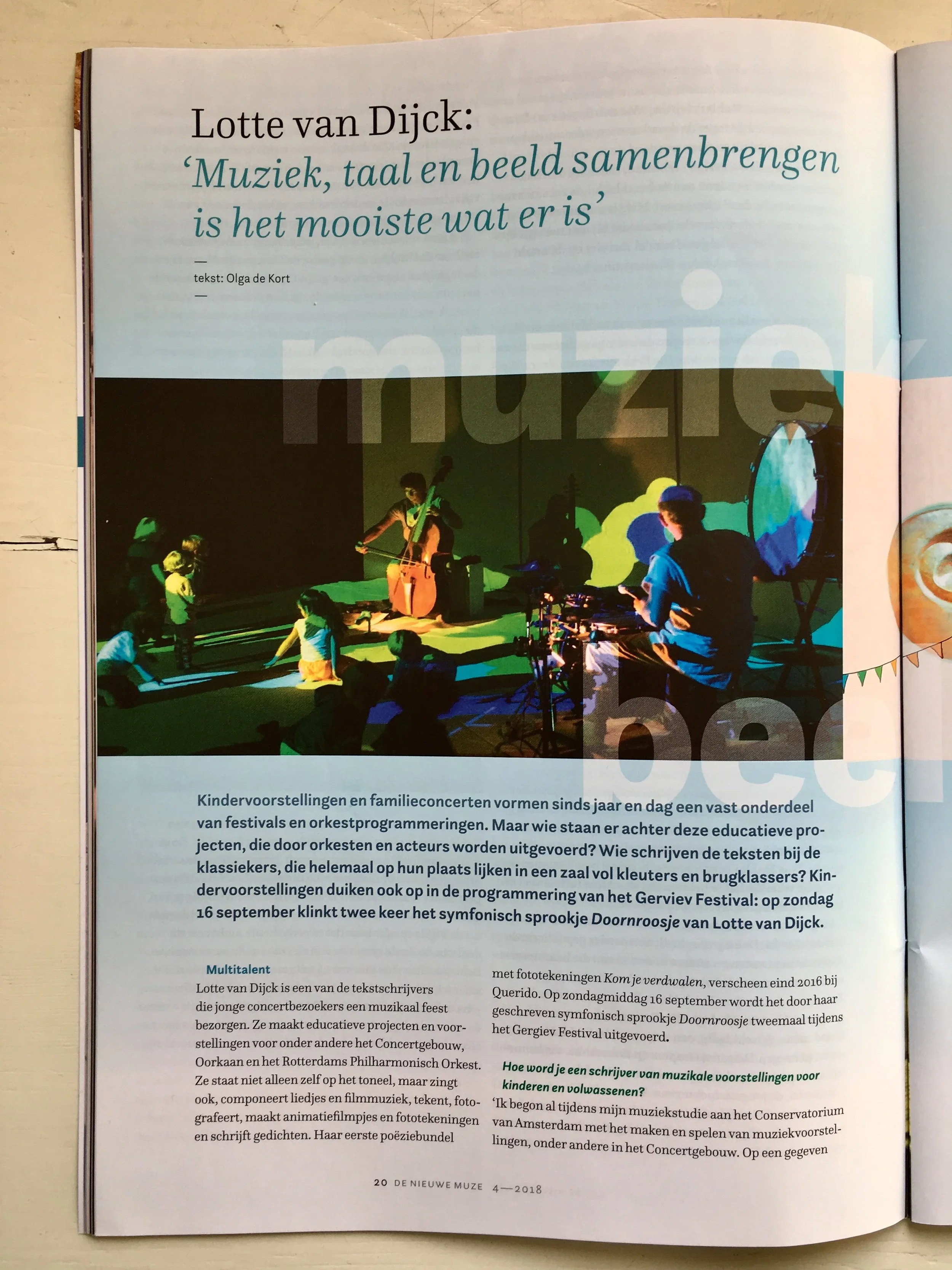 In dit artikel in het blad ‘De Nieuwe Muze’ (tekst: Olga de Kort) kun je meer lezen over de voorstellingen die ik maak.
